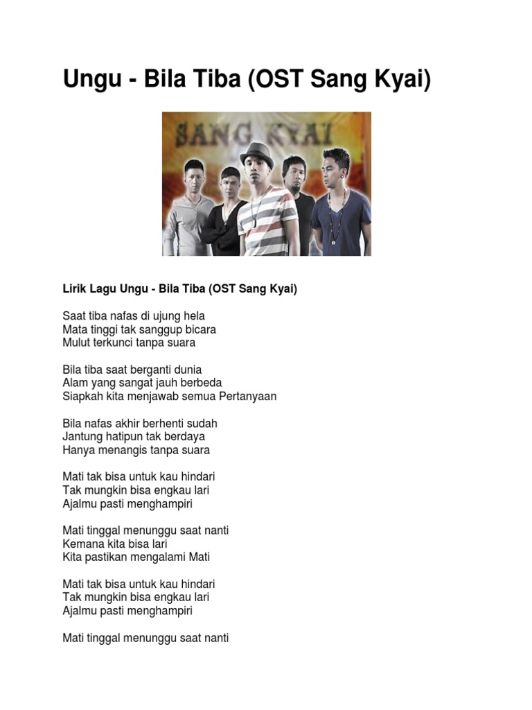 Bila Tiba Lyrics By Ungu Saat Tiba Nafas Di